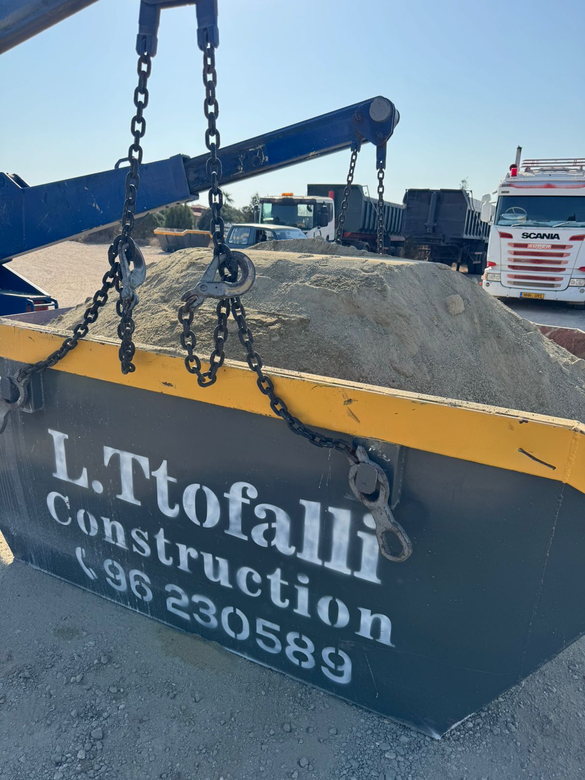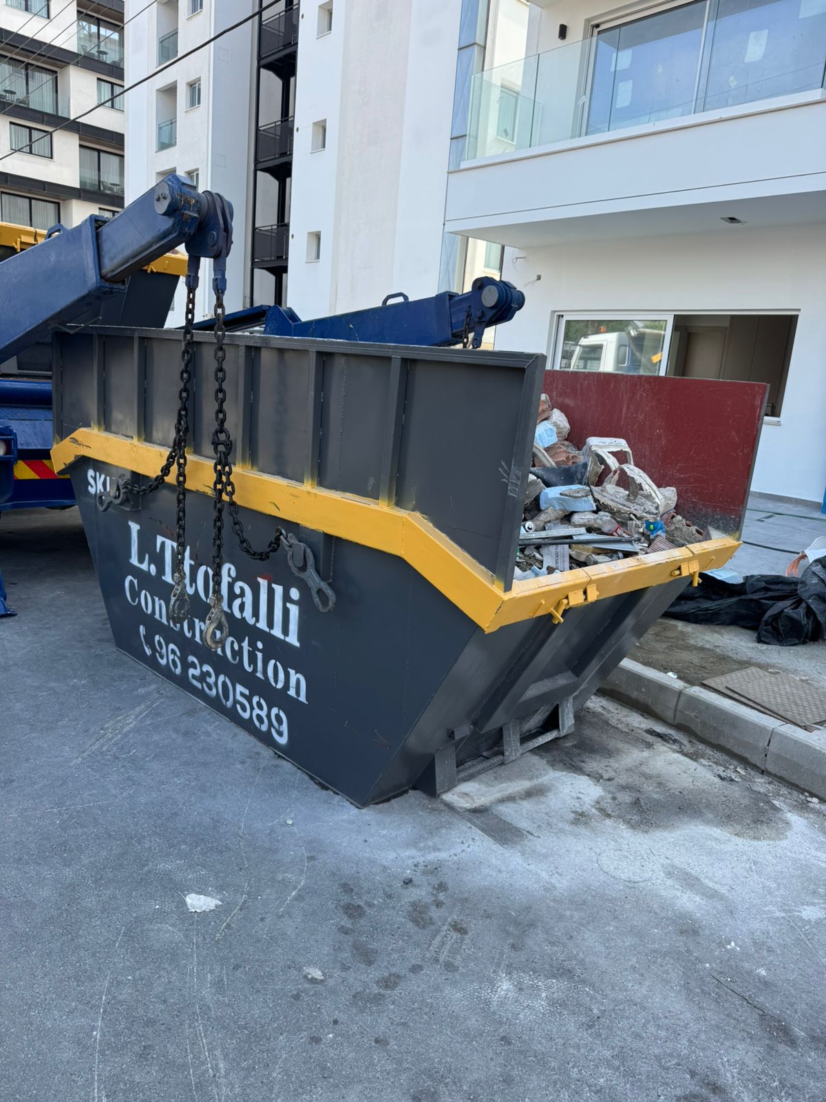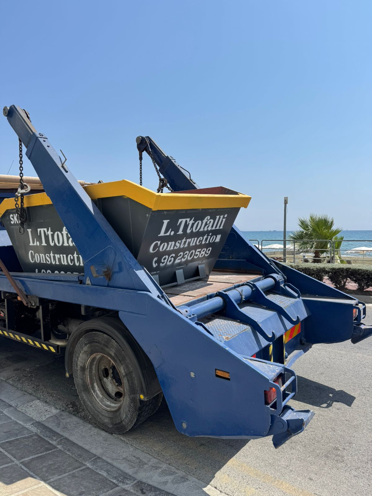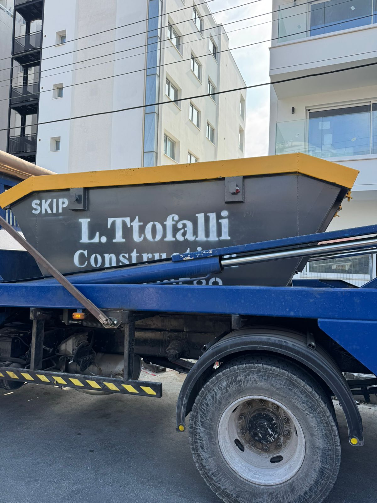 H L.Ttofalli Construction LTD παρέχει στους πελάτες της υπηρεσίες ενοικίασης SKIP με υπευθυνότητα, σοβαρότητα και αξιοπιστία. Η εταιρεία μας διαθέτει σύγχρονο και κατάλληλο εξοπλισμό και εκπαιδευμένο προσωπικό. Η εταιρεία ειδικεύεται στην ενοικίαση κάδων αποκομιδής στερεών αποβλήτων (SKIP), παντός είδους χωματουργικές εργασίες, μεταφορές εμπορευματοκιβωτίων (containers) και άλλων διάφορων υλικών και αντικειμένων, από και προς τα Λιμάνια της Κύπρου.